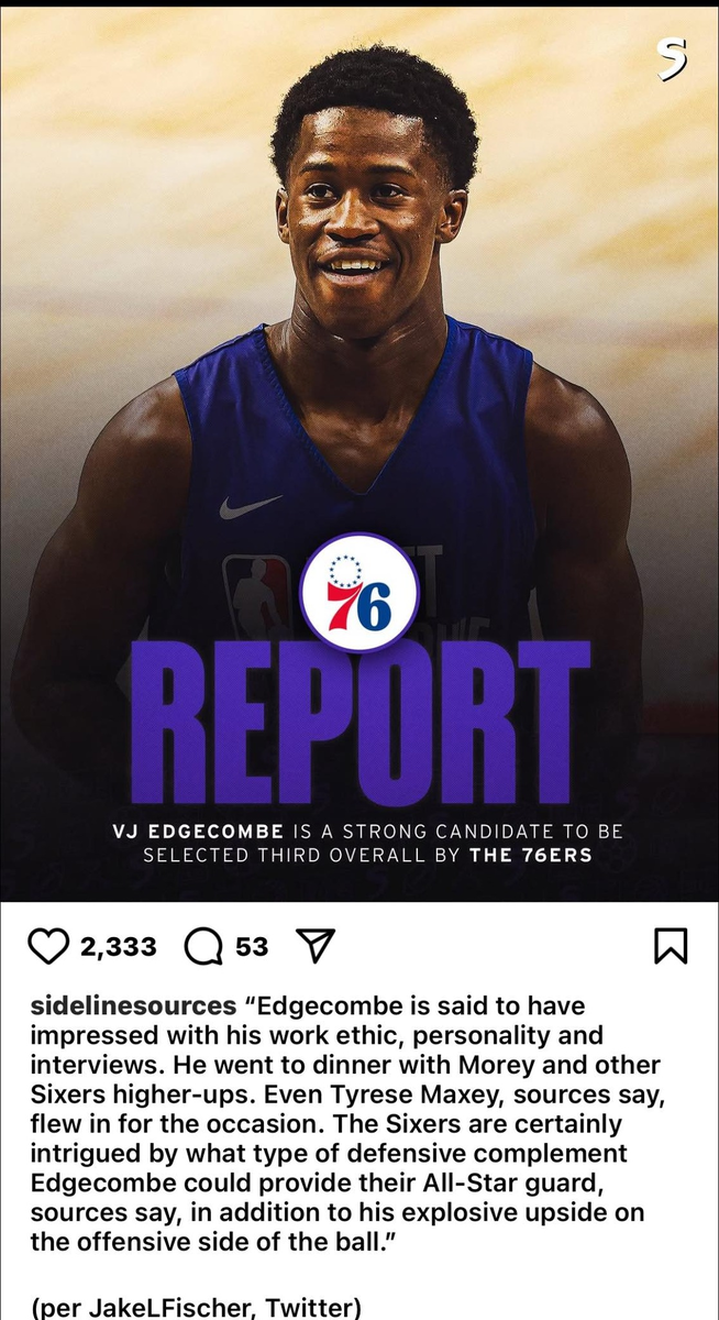 June 10Jun 10 1 hour ago, e-a-g-l-e-s eagles! said:I like Justin Edwards but I think you’re putting a lot of eggs in the basket thinking Edwards is going to reach what Murphy did this past year. Murphy averaged 21-5-3.5 last year and 38.3% from 3 in his career. Add on if Edwards becomes as good as Murphy then I can always trade Murphy because he’s going to have good value as he’s still young and decent contractTbh I’d love to have Maxey, Murphy, 7th overall pick and that player you see with Edwards all be starters and bring McCain off the bench as our 6th man. Especially if we somehow got the clippers, our pick and pelicans in 2028.I didn’t follow him at all last year but watching some highlights and his dribbling got a lot better it appears. You are probably right, I love over-rating our guys! Maybe Edwards is Ricky Council’ing me 😂
