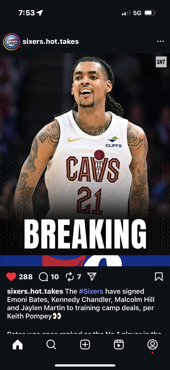 September 23Sep 23 10 hours ago, HazletonEagle said:How is this?Awesome. Thanks.We're talking SuperBowl now.CopIlot:Sixers sign 4 players to training camp deals. What are their positions height and profilesThe Philadelphia 76ers have signed four players to Exhibit 10 contracts ahead of training camp: Emoni Bates, Kennedy Chandler, Malcolm Hill, and Jaylen Martin. Here's a breakdown of their positions, heights, and profiles:🏀 Player ProfilesPlayerPositionHeightProfile SummaryEmoni BatesForward6'8"Former high school phenom, 21 years old. Played 25 NBA games with the Cavaliers. Known for scoring ability but inconsistent shot selection. Averaged 19.8 PPG and 5.6 RPG in the G League2.Kennedy ChandlerPoint Guard5'11.5" (without shoes)True PG, drafted No. 38 in 2022. Played 50 G League games last season with Raptors 905, averaging 13.2 PPG, 5.1 APG, 2.8 RPG, and 1.3 SPG2.Malcolm HillWing/Swingman6'6"Veteran journeyman, 29 years old. Played briefly for Atlanta, Chicago, and signed a 10-day deal with New Orleans. Averaged 22 PPG and shot 41.8% from three in the G League last season2.Jaylen MartinForward/Wing6'6"21 years old, split rookie season between Nets and Wizards. Played 16 NBA games. Averaged 13.5 PPG, 3.6 RPG, 2.1 APG, and 1.2 SPG in the G League2.These Exhibit 10 deals are typically non-guaranteed and often lead to G League assignments, but they can be converted into two-way or standard contracts depending on performance.