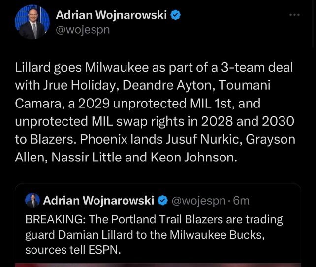 September 26, 20232 yr 1 hour ago, Shepard Wong said: https://www.si.com/nba/2023/09/26/damian-lillard-trade-expected-by-media-day-says-nba-insider well 24 hours didnt happen so might as well go with a new deadline. 10/2 it is. We will see.
