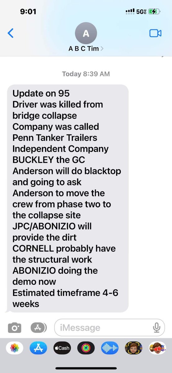 June 14, 20232 yr On 6/12/2023 at 12:37 PM, iladelphxx said: Building trades are saying 4-6 weeks assuming they get full government cooperation I’m not sure where this text is from but I do have some questions on the accuracy of the info provided. The company is called TK Transport, not Penn Tank Trailers. I’ve never heard a contractor refer to highway paving work as "blacktop”. It’s possible some could, just not something I’ve heard it referred as. There’s really no dirt to provide, it’s a bridge replacement. The timeframe is all based on fabrication of the beams for the new bridge. So unless they’ve been in touch with a supplier that’s said they could have the new beams out in a few weeks, the estimated time frame is a big guess there. Abonizio is doing the demo work, so that’s accurate.