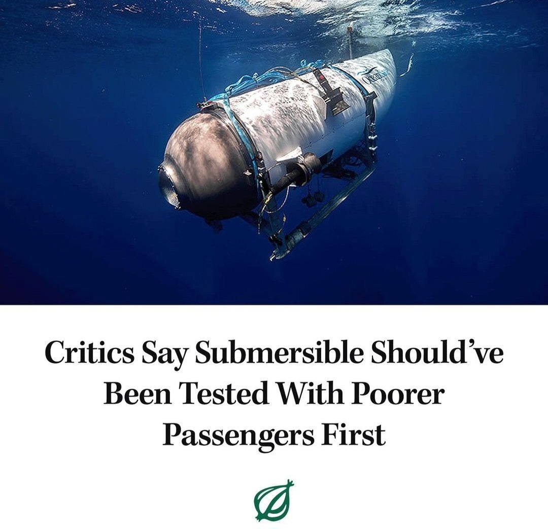 June 23, 20232 yr The company is going to be sued regardless of the signed waivers. The negligence is astonishing. The vessel was a tube. Experimental. It was unlike other mainstream types of vessels that are more round. They were warned by other experts in the field about the dangers, before this voyage took place. It appears they never tested it. It also appears they never went through any type of certification process. It also appears that this was the first time it went in the water. The hull used the wrong material. Carbon fiber, not steel or titanium. they didn't have any back up system or Auto return system.