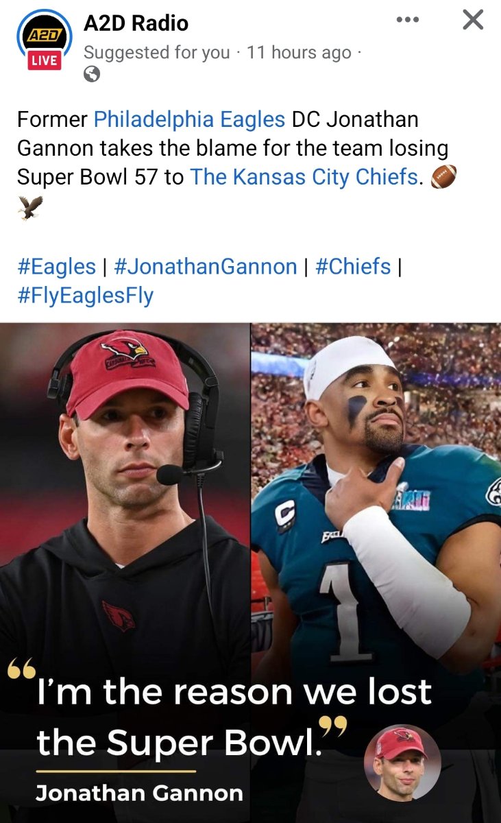 September 6, 20232 yr Author Ok, Jonathan πΒ shame you didnβt pick someone else to call the defense in the SB you Fing loser. Β https://www.nbcsportsphiladelphia.com/nfl/philadelphia-eagles/gannon-says-he-suggested-sirianni-give-up-play-calling-in-2021/534748/?amp=1